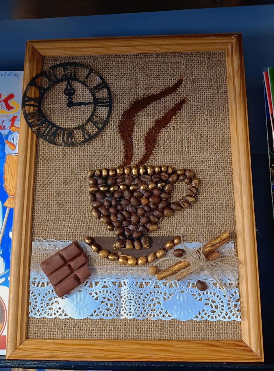 Затем на мастер-классе «Панно из кофе», участники учились создавать красивые панно из кофейных зерен, развивая свои творческие способности и узнавая о необычных способах использования кофе.
