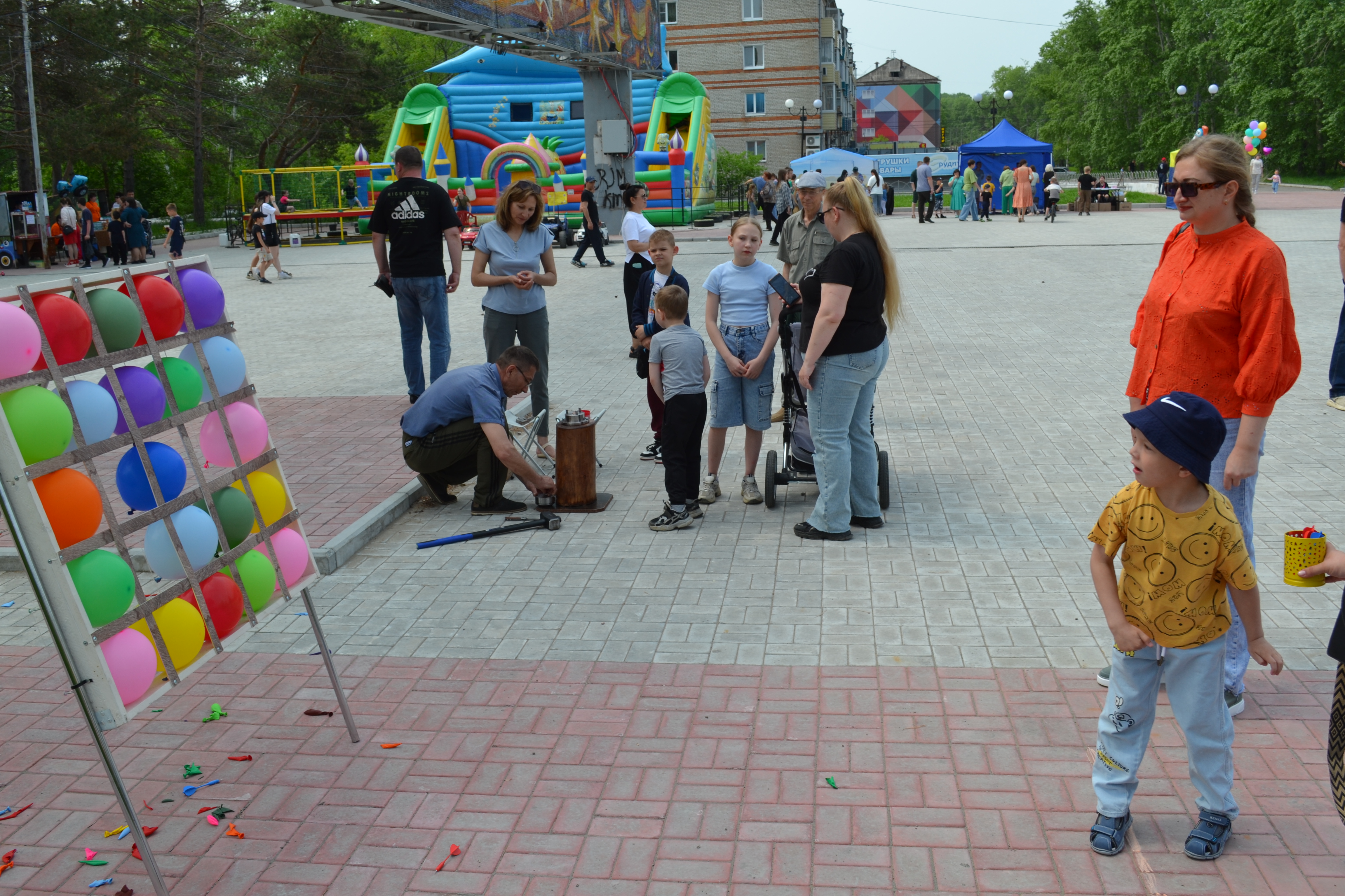 Дворец культуры, Амурский краеведческий музей, местное отделение всероссийской организации родителей детей инвалидов, мотоциклетный клуб «SLAVS» MC, АХКО «Хутор вольный», станции Фестиваля детства и юности «Движения первых», отдел по молодежной политике физической культуре и спорту администрации города Амурска собрались вместе, чтобы поздравить юных амурчан с началом лета.