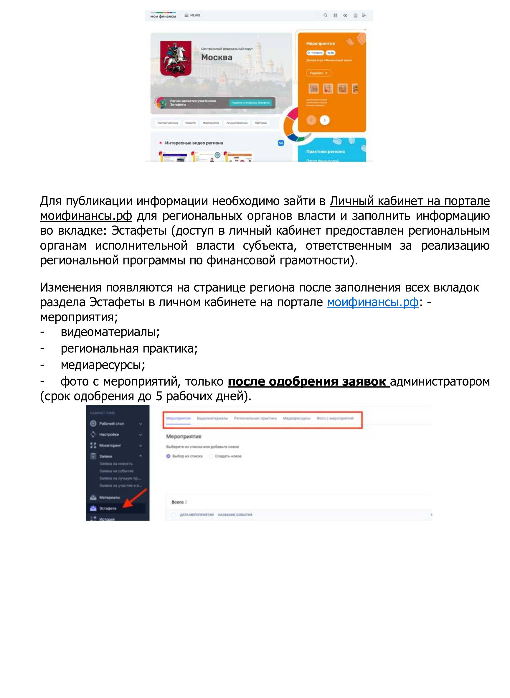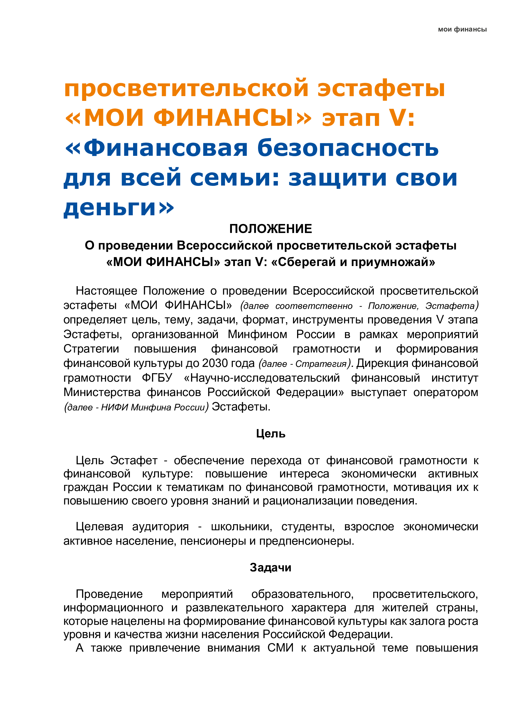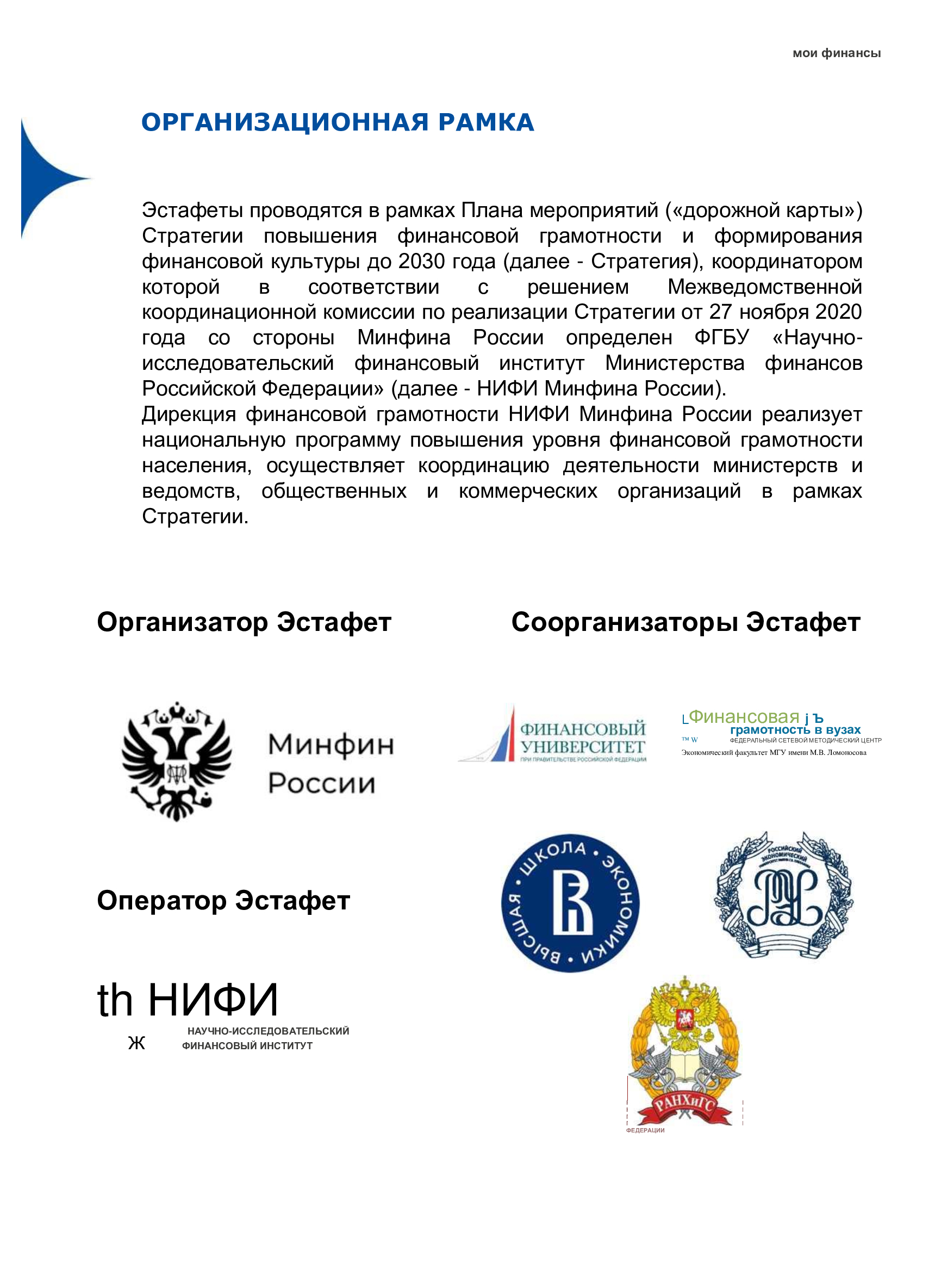 Дополнительная информация для проведения мероприятий представлена в прилагаемом руководстве участника Эстафеты и на портале моифинансы.рф (раздел Эстафета).