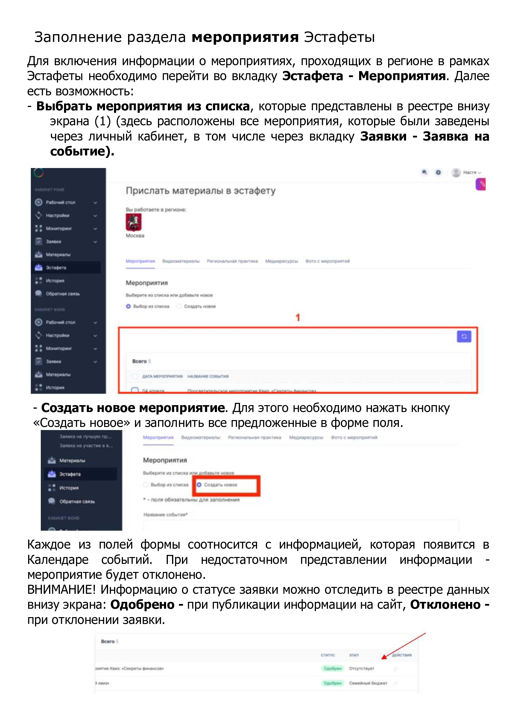 Итоговая информация о проведенных мероприятиях и количестве посетителей / пользователей, принявших в них участие в рамках пятого этапа Эстафеты будет запрошена дополнительно.