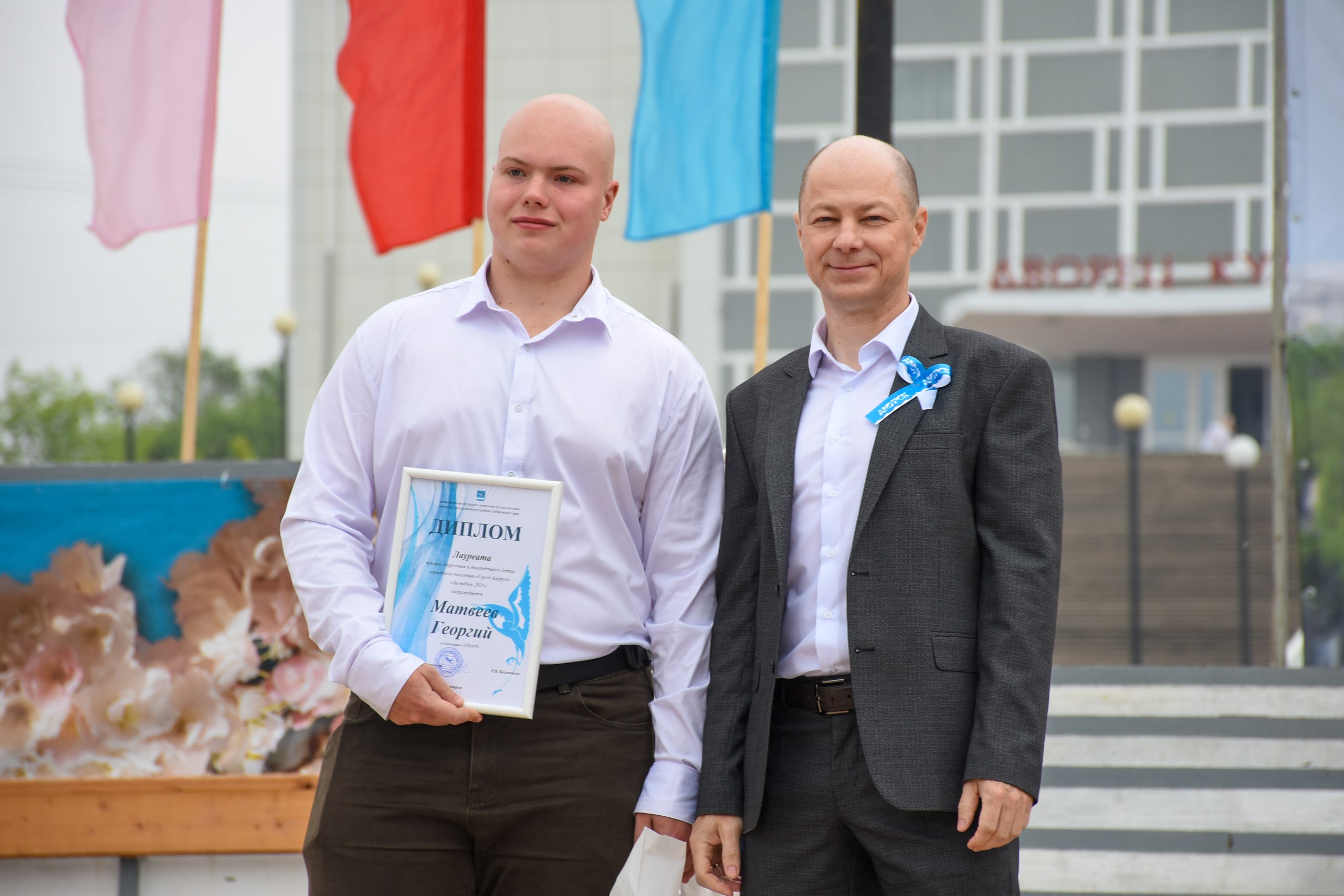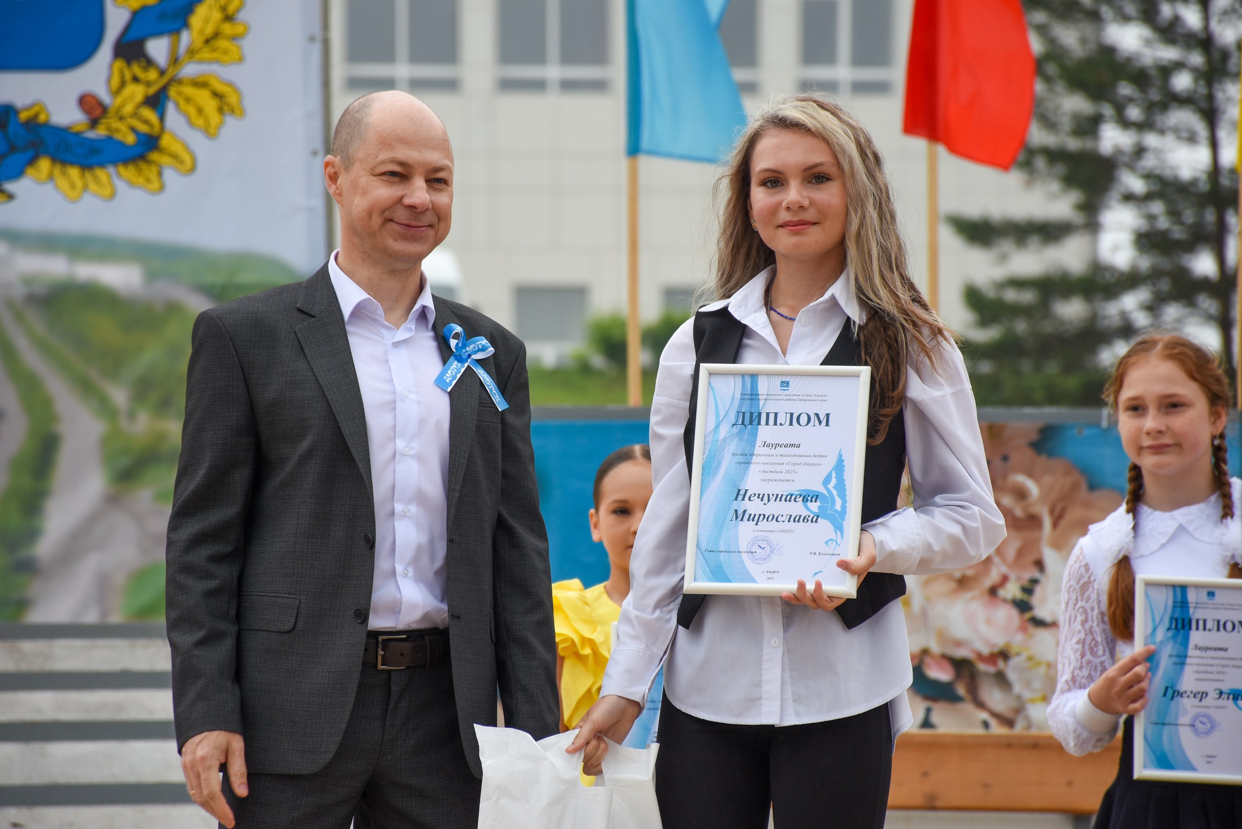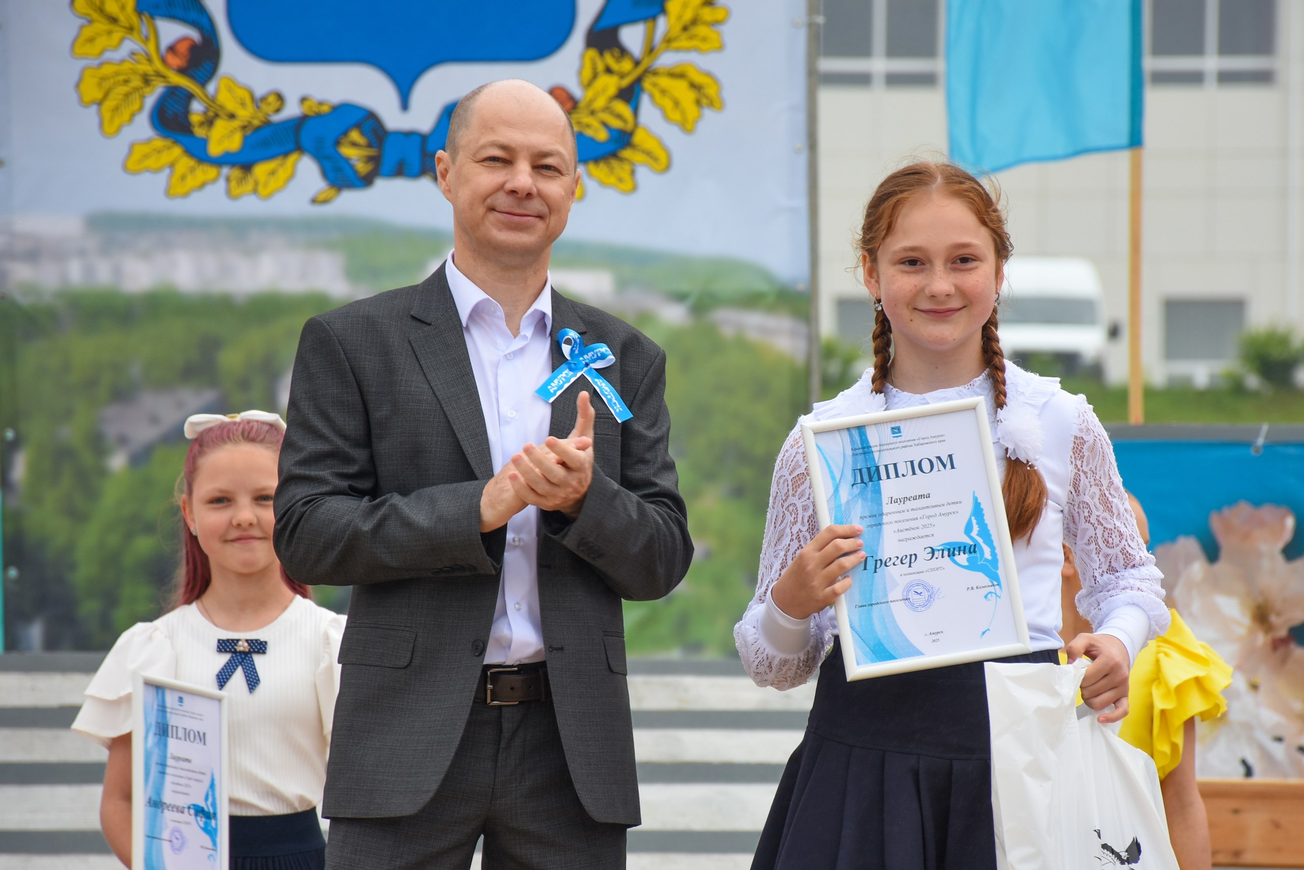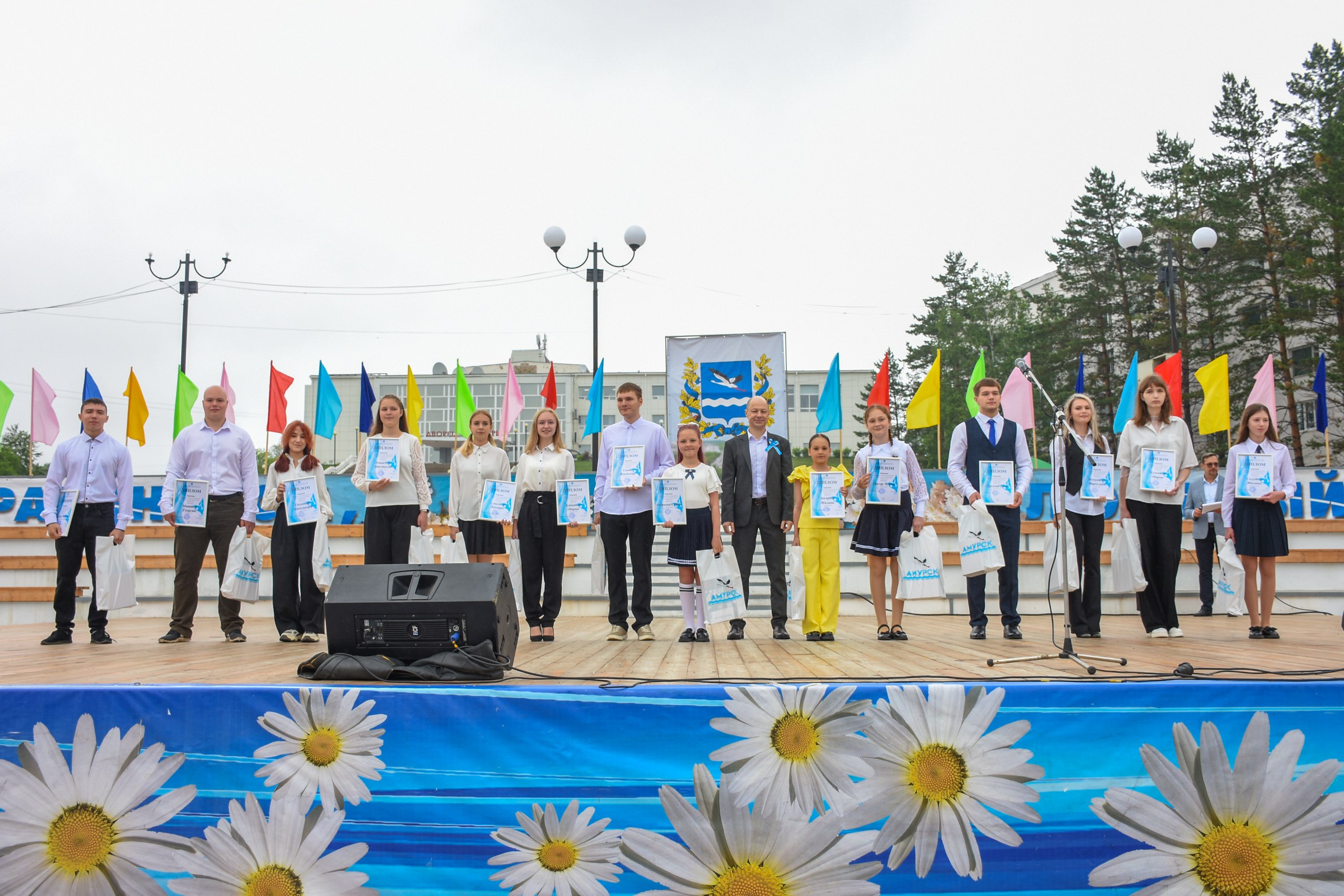 Во время торжественной части празднования Дня города из рук главы города свои первые паспорта гражданина Российской Федерации получили 8 юных амурчан, а также были награждены 14 лауреатов в различных номинациях ежегодной премией для талантливых детей «Аистенок - 2025».