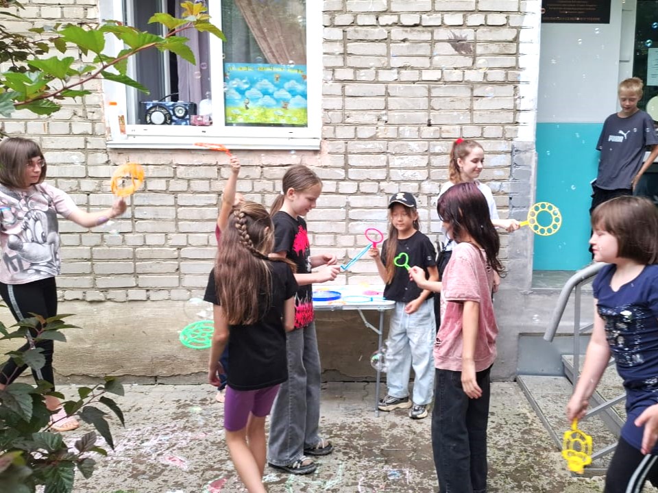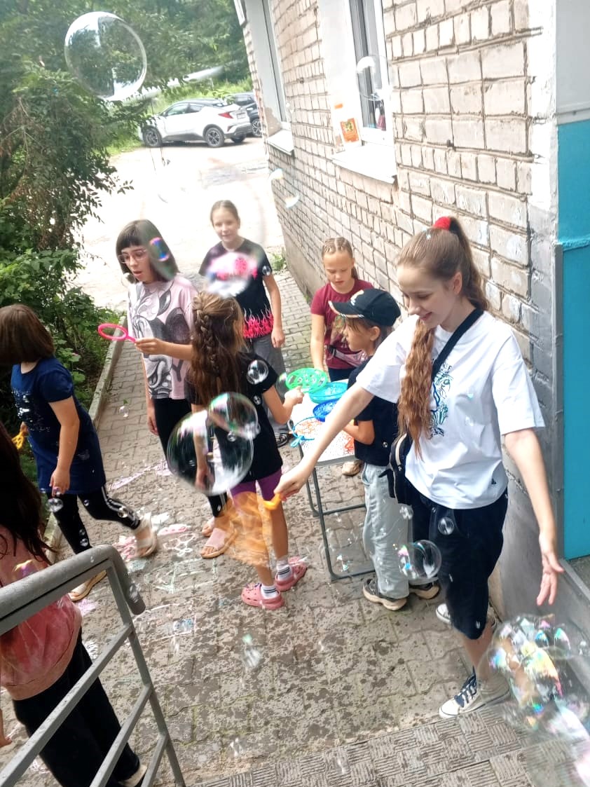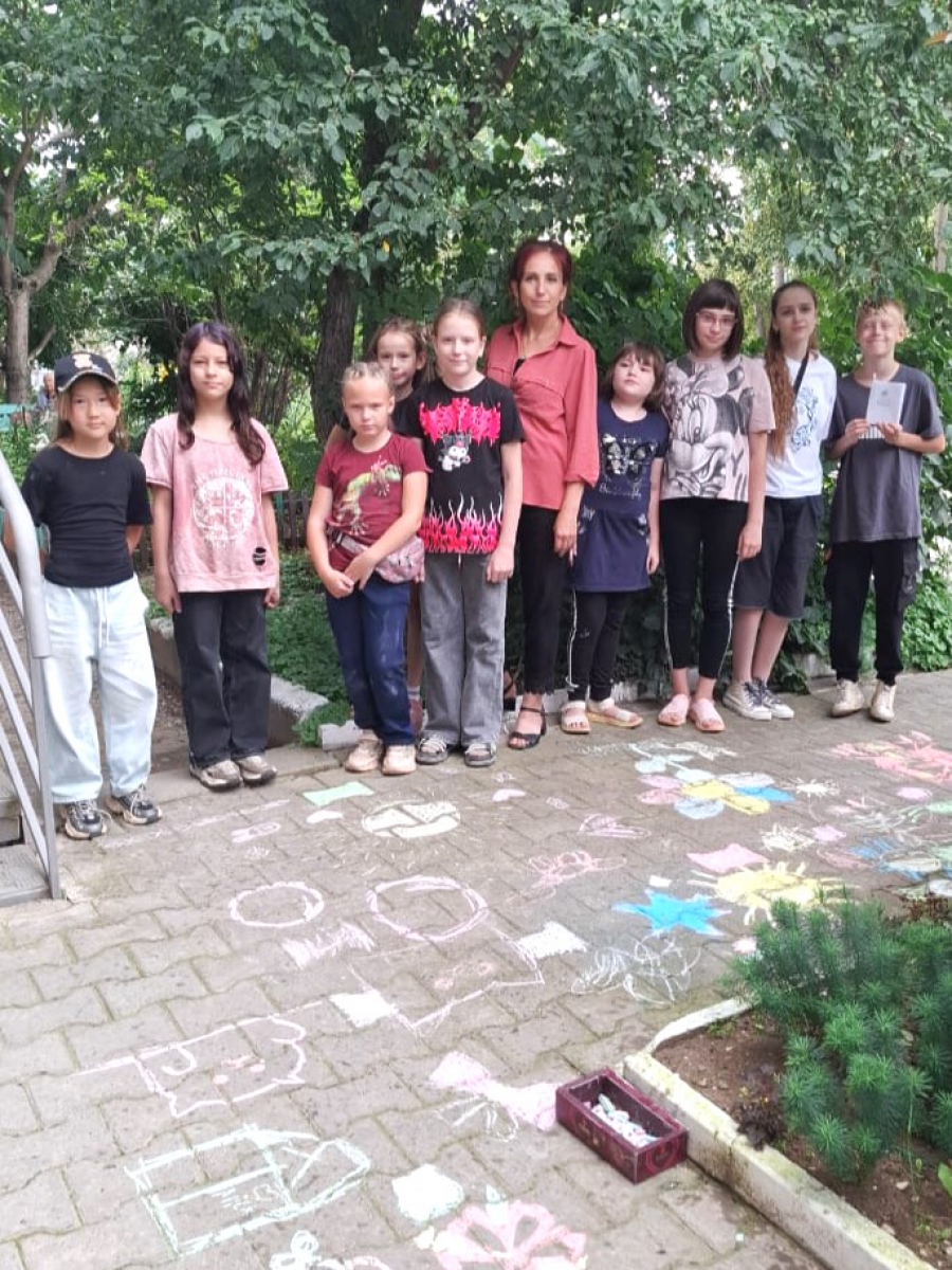 Библиотекарь организовала для ребят игровую программу, чтобы красиво завершить этот сезон. Дети с радостью делились воспоминаниями о своих летних путешествиях, рисовали на асфальте под весёлые детские песни и запускали мыльные пузыри.