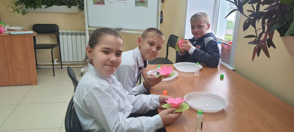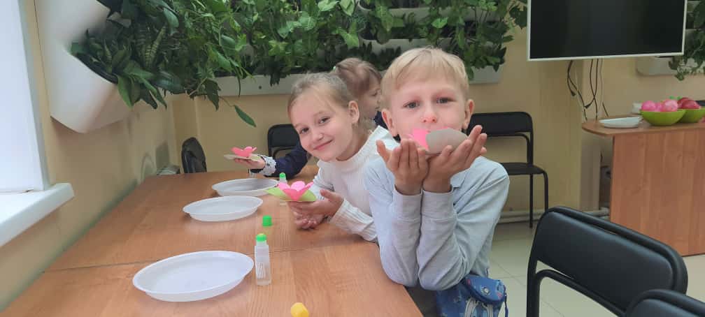 Завершающим этапом стало проведение мастер-класса по изготовлению поделки "Лотос Комарова" из цветной бумаги и клея. Данное растение является редким и включено в Красную книгу Хабаровского края, что подчеркнуло актуальность темы мероприятия.