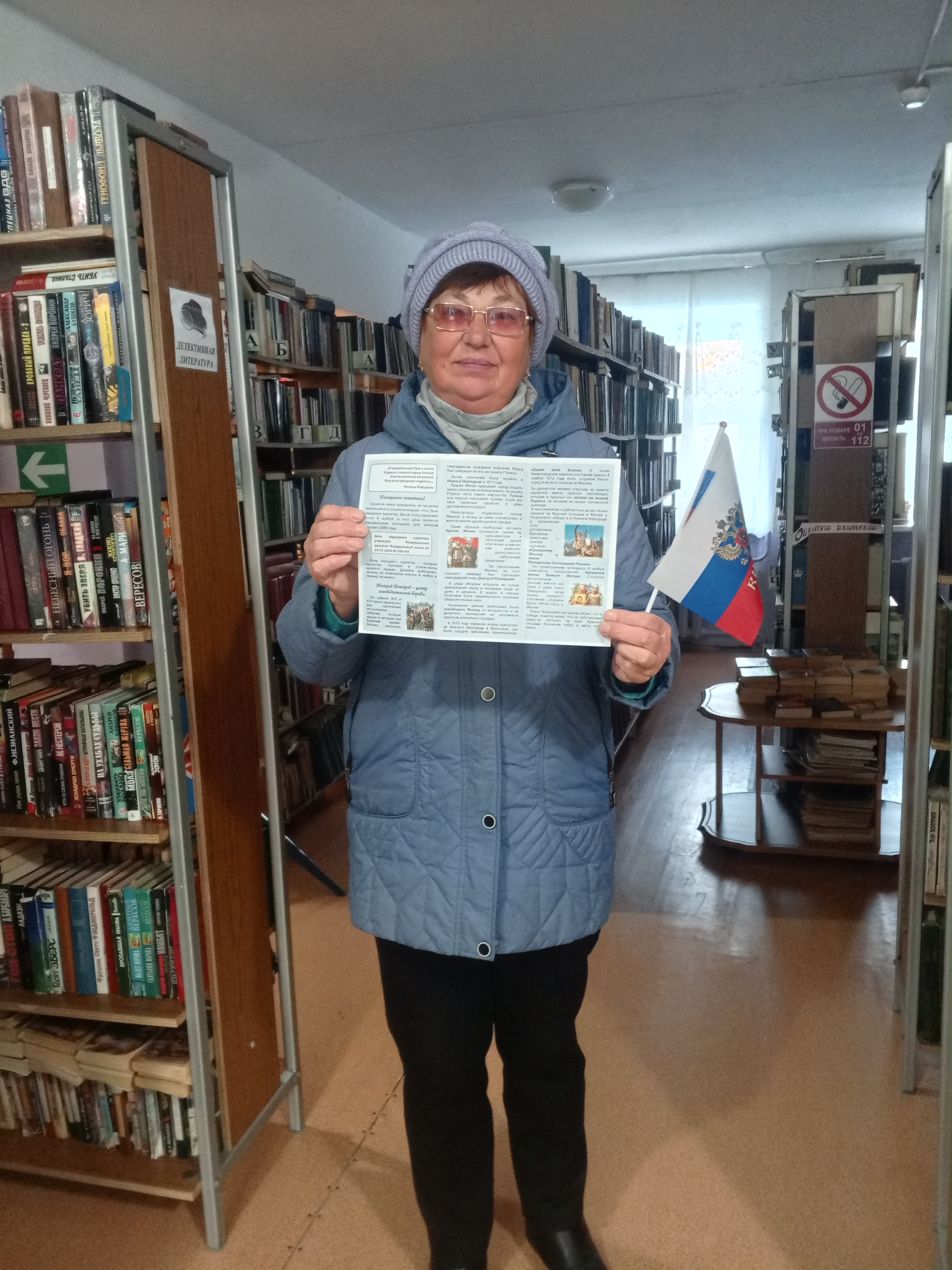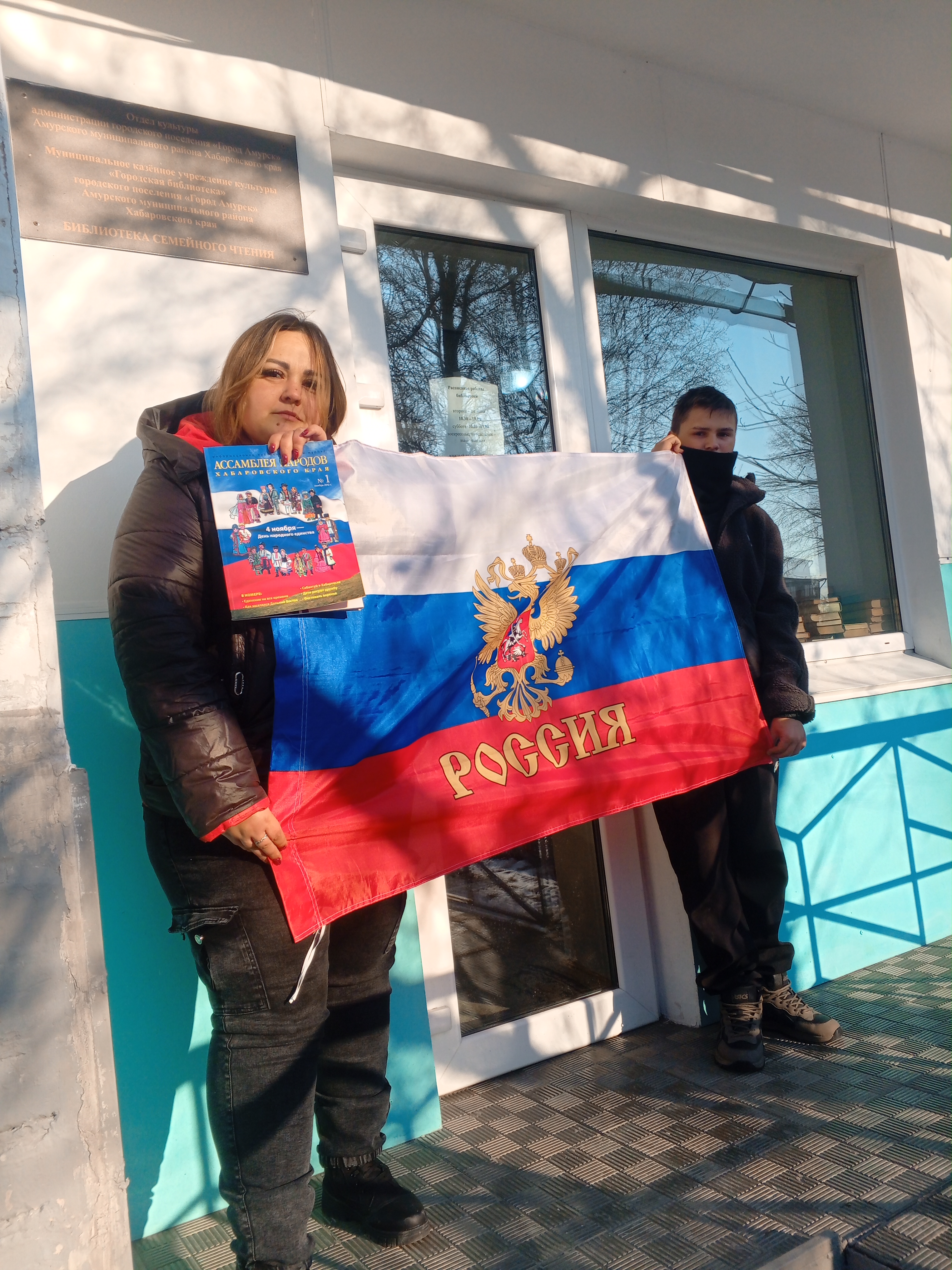 Сотрудники библиотеки семейного чтения в преддверии празднования Дня народного единства провели патриотическую акцию «Едины – Непобедимы», вышли на улицы нашего города и раздавали прохожим буклеты с информацией о предстоящем празднике «День народного Единства».