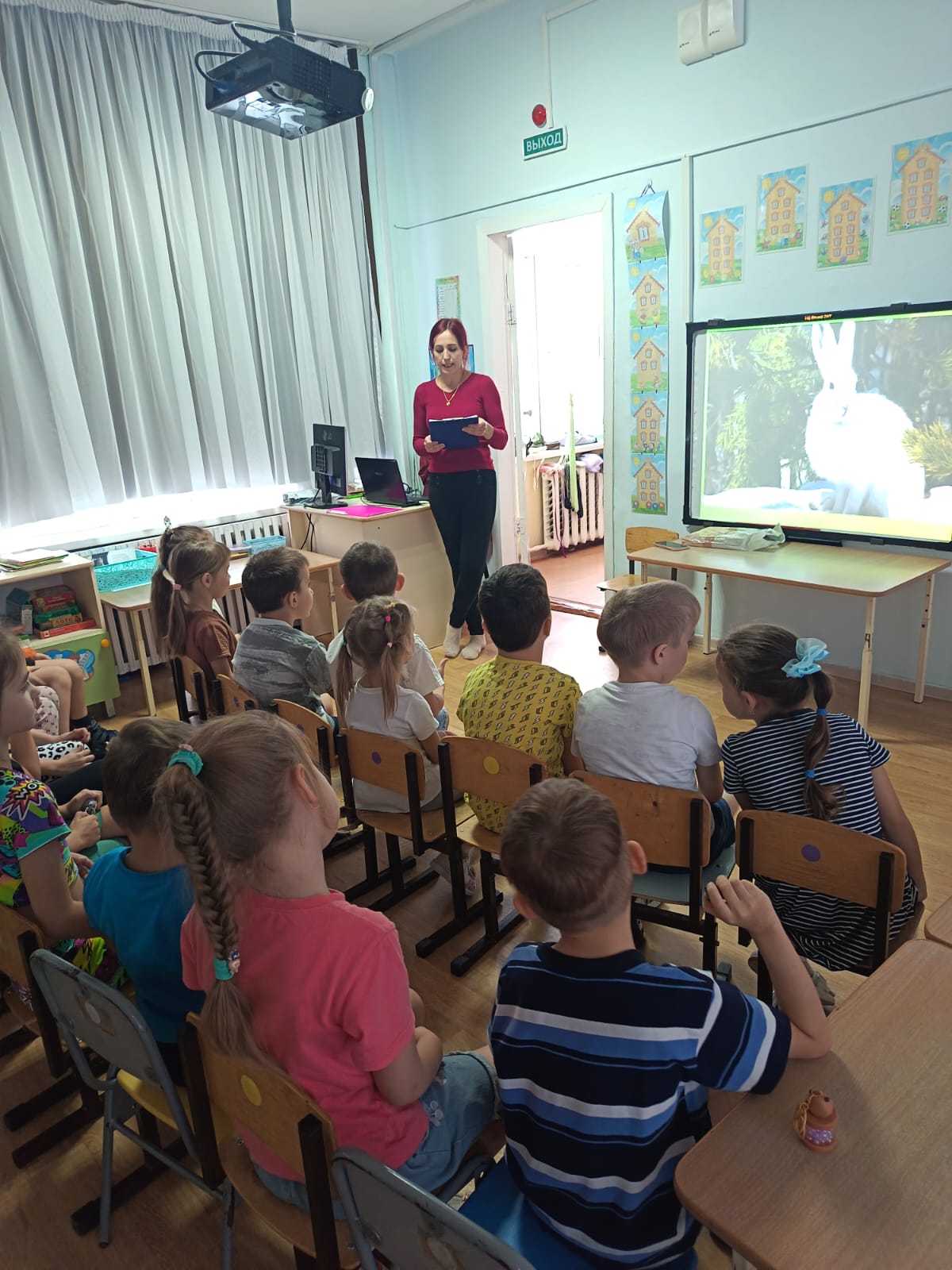 Ребята совершили увлекательное путешествие по заснеженному лесу. Они посмотрели красочный видеоролик, познакомились с лесными жителями и узнали много нового: кто из животных впадает в спячку, кто меняет окрас, а кто делает запасы на зиму. С большим интересом дети рассмотрели, как устроены логово волка, берлога медведя, нора лисы, кладовые белки и гнездо ёжика. Чтобы закрепить увиденное и услышанное, ведущая провела викторину «Животные леса», с вопросами которой ребята без труда справились. А благодаря «Зимним загадкам», ребята вспомнили зимующих обитателей наших сибирских лесов.