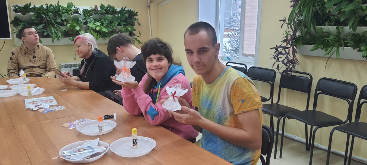 Но настоящим апогеем дня стал творческий мастер-класс по изготовлению ангела из картона и пряжи. Под чутким руководством наставников ребята с энтузиазмом принялись за дело. Картонные заготовки превращались в изящные фигурки, а пряжа добавляла им тепла и уюта. Каждый ангел получился уникальным, отражая индивидуальность своего создателя. Эти маленькие шедевры стали не просто поделками, а символами доброты, надежды и безграничных возможностей.