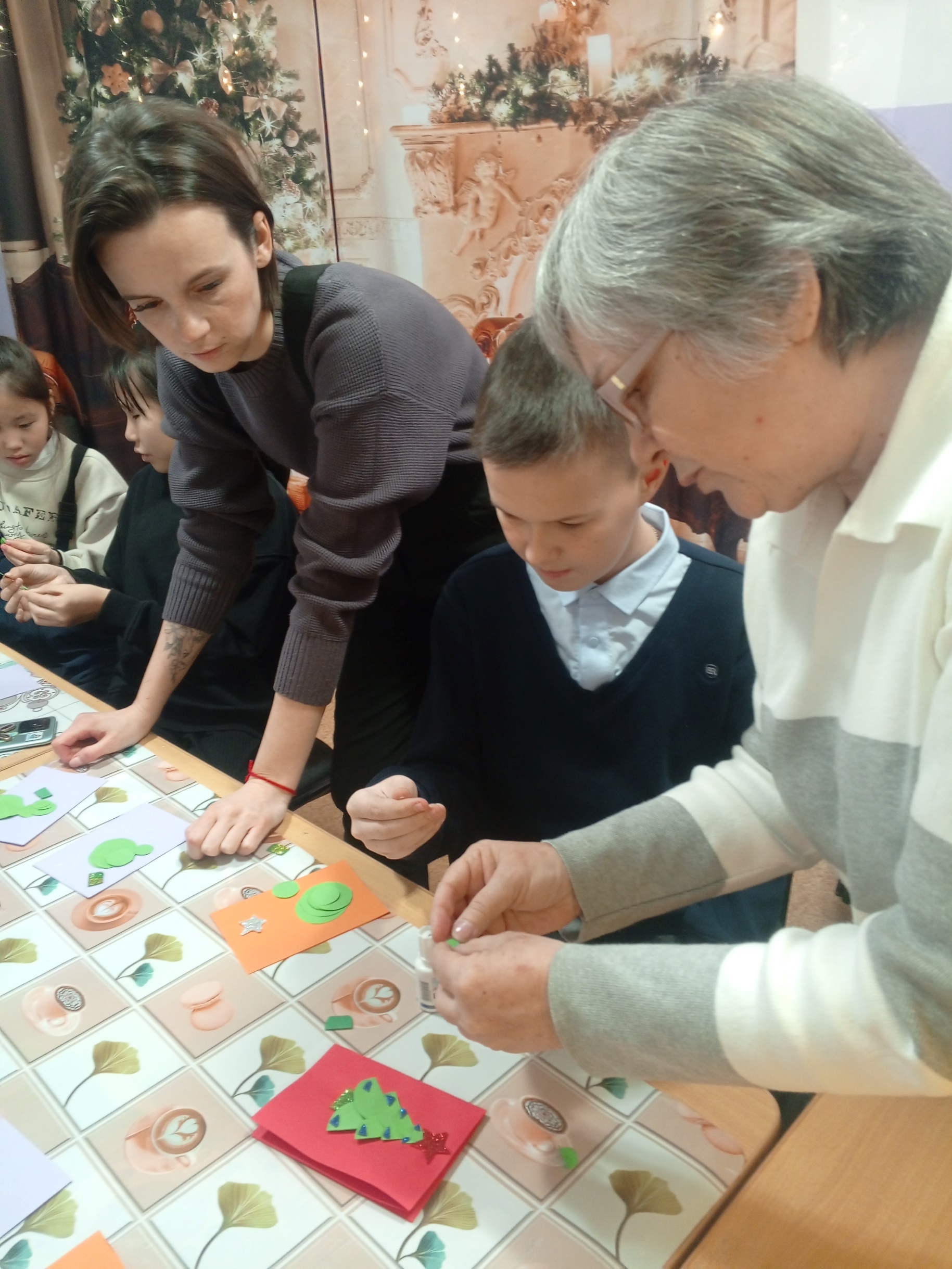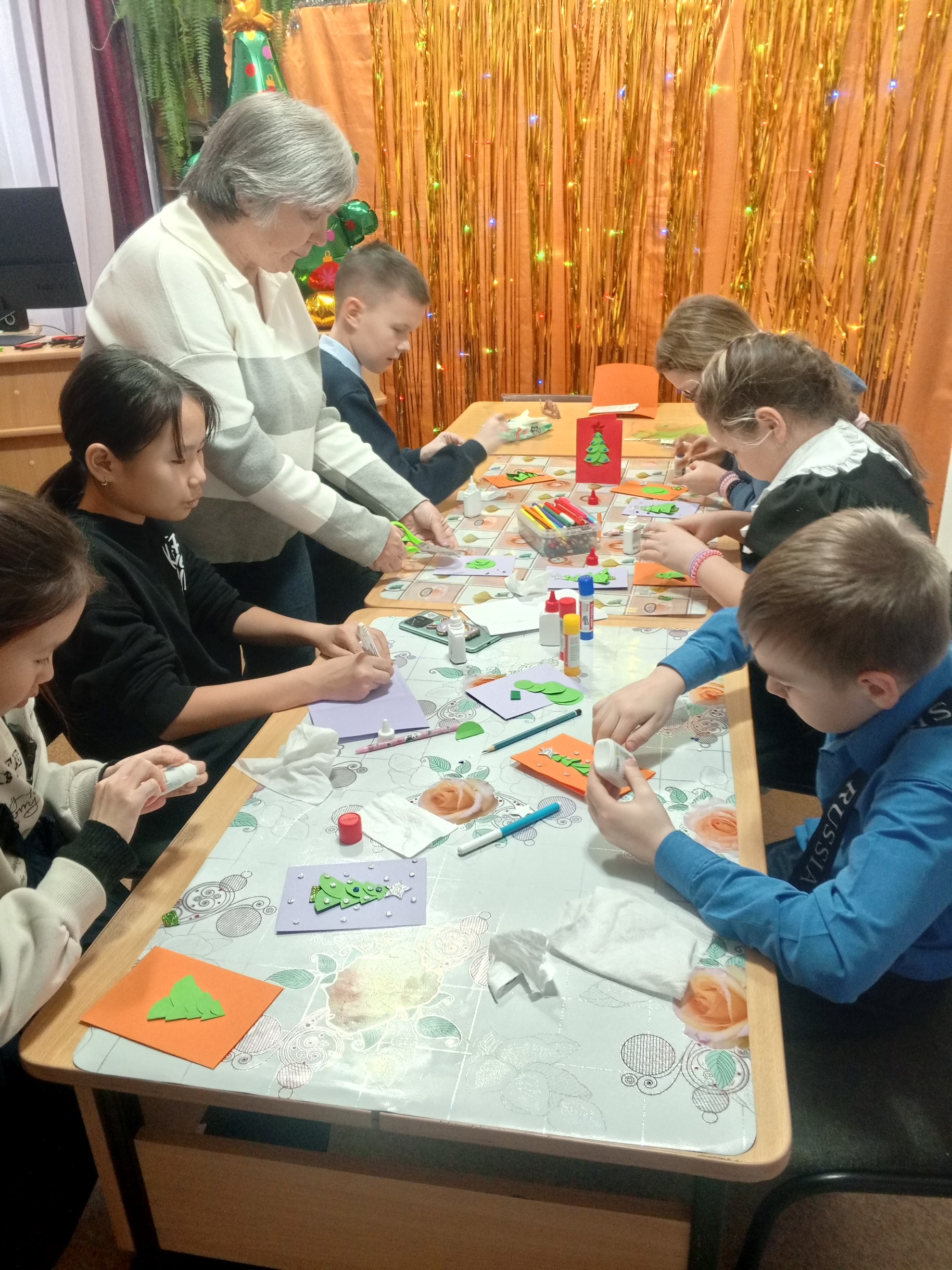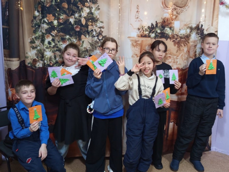 Дети своими руками изготавливали поздравительную открытку «с Новым годом». Перед началом мастер-класса учащимся было предложено поучаствовать в небольшой викторине «Отгадай загадку». Тема викторины – зима и Новый год.